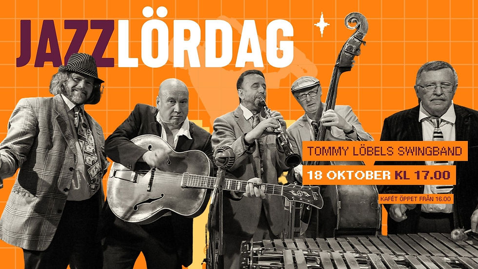 18 oktober kl 17 kommer Tommy Löbel och Sveriges svängigaste swingband och bjuder på äkta 30- och 40-talsswing i Benny Goodmans anda – fullt av charm, rytm och glädje! Med repertoar hämtad från Louis Armstrong, Duke Ellington, Billie Holiday och andra jazzlegender kommer det bli garanterad stämning på Birkagården denna lördag!